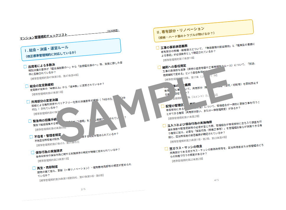 「マンション管理規約チェックリスト(全20項目)」を無料配布中!